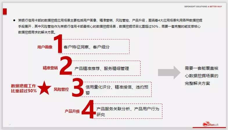 信用卡中心经过多年的沉淀已形成了完善的客户分析及机器学习建模体系,但随着外部数据的引入以及业务的多样化,业务部门对数据分析挖掘的需求越来越多,且时效性要求越来越高。传统分析工具因存在数据量不全、单机多租户等问题,逐渐无法满足业务部门对客户进行分析和建模的需求。