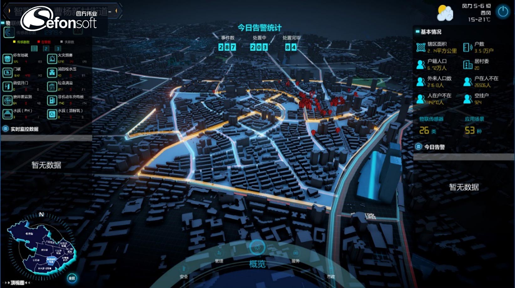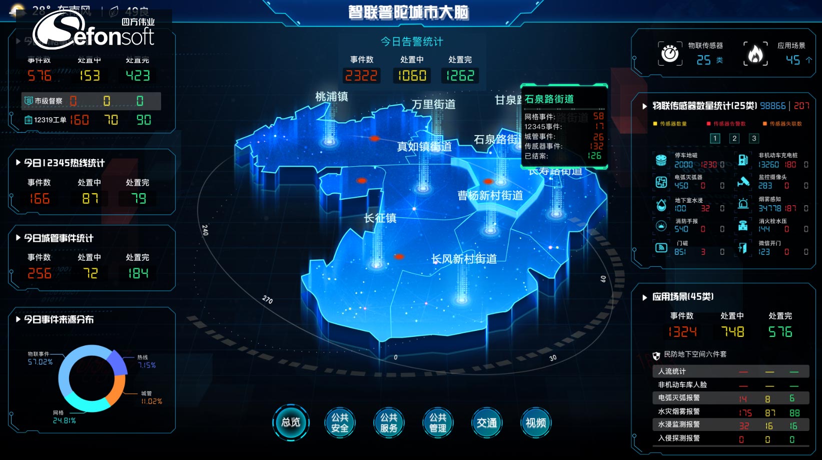 结合数字孪生理念,运用空间GIS、二三维可视化手段,构建智慧城市运营管理中心,基于大数据、人工智能等前沿技术,创新智慧城市运行管理模式,实现运营管理中心“可看,可用,会思考”的目标,帮助城市管理者提高城市运营管理水平、将驱动城市管理走向精细化,建设文明和环境美好城市、提高政府服务水平,进一步提升市民的幸福指数,为城市的可持续发展奠定基础。